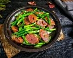 锅中水烧开,放适量盐,倒入芦笋焯烫一下。