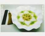 將洗淨菠菜放到榨汁机里榨制菠菜汁,另起锅倒入菠菜汁加入少許鹽烧开后,淋入蒸好的白蘿蔔里。