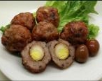 市場买的现成肉滑,像包汤圓一样将鵪春蛋包成肉丸子。
