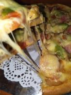 3、馅料中的食材最好是熟的,或者炒制一下。在烘烤的时候时间不宜过长,马苏里拉烤化就可以了,烤时间长了马苏里拉烤干了就不拉丝了。