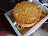 15、蛋糕糊在不高处缓缓地倒入中空模具中,八分满左右,轻震几下,震出大气泡