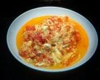 鸡蛋打敢、番茄先用热水烫一烫撕皮,切块备用