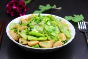 加入洗净的切好的眉豆,翻炒一下;让眉豆和芋儿都炒出香味。