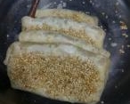 电饼铛刷上一层食用油,预热好后,将醒发好的面胚表面刷层水,沾上芝麻,将其烙制作两面金黄色即可。