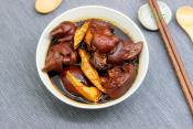 把煮好的猪脚、生姜、红糖,放入大的瓦罐,倒入添丁糖醋,醋要浸没固体,瓦罐不要放太满,留空间放鸡蛋。