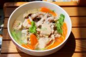 把鱼去肉切块(用来清蒸,清蒸鱼块下次介绍),鱼骨切块,鱼汤、鱼尾分别洗净、切好,加入洗净切好的生姜丝、盐、油拌均。