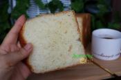 土司烤好之后取出,打开盖子,香喷喷,趁热脱模,并把土司放入冷却架上。冷至不烫手的时候放入保鲜袋装好。吃的时候切片