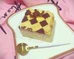 因为使用的是慕斯圈,脱模比较方便,可以直接在蛋糕盒垫片或盘子上制作。将慕斯圈放在盘子上,把之前切割好的蛋糕片放入模具中。