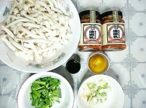 准备食材,白玉菇洗净,韭菜洗净切段,葱蒜切开。