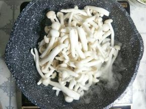 油温七成热放入白玉菇。