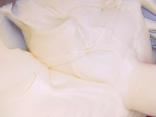 蛋黄里加入8g砂糖,用电动打蛋器打发至微微反白状态