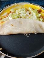 抹自己喜欢的酱,然后生菜小葱,正宗的是要有油条或者薄脆的,我不喜欢油炸食品,所以没放