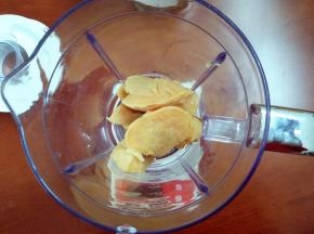 3.把淡奶油和牛奶肉桂粉也放入料理机内