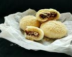 18. 依次完成剩下五份,按扁,表面刷一层水或者蛋液或者黄油,我刷的水,所以烤完的火烧偏白,刷完水,粘层芝麻,码入金盘 放入预热好的烤箱,上下火180度中下层18分钟
