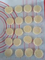 用直径5厘米的圆形切模,沾面粉在烤盘上做上印记。
