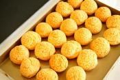 烘烤好的泡芙,半球形,膨胀隆起,形状饱满。表皮金黄色,上色均匀,酥皮纹路清晰漂亮。底部没有凹陷。