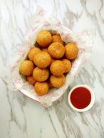 椒盐是中式菜肴中常用的调味料,它有着独特的味道。这道椒盐土豆,是把蒸熟的土豆捣成泥,加入适量淀粉揉匀后搓出小球用油炸至金黄,最后撒上椒盐。趁热沾着番茄酱吃,那叫一个美味哟。今天刚做好,女儿一下吃了5个,哈哈**